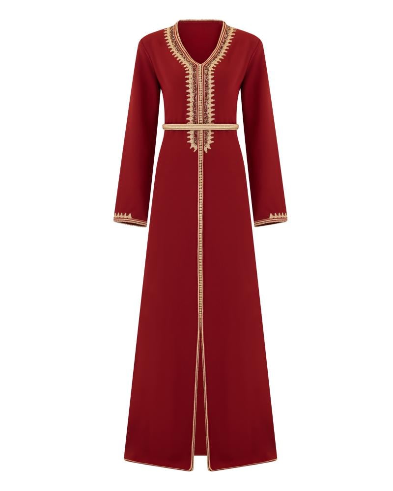 قفطان لون أحمر غامق تطريز يدوي فاخر